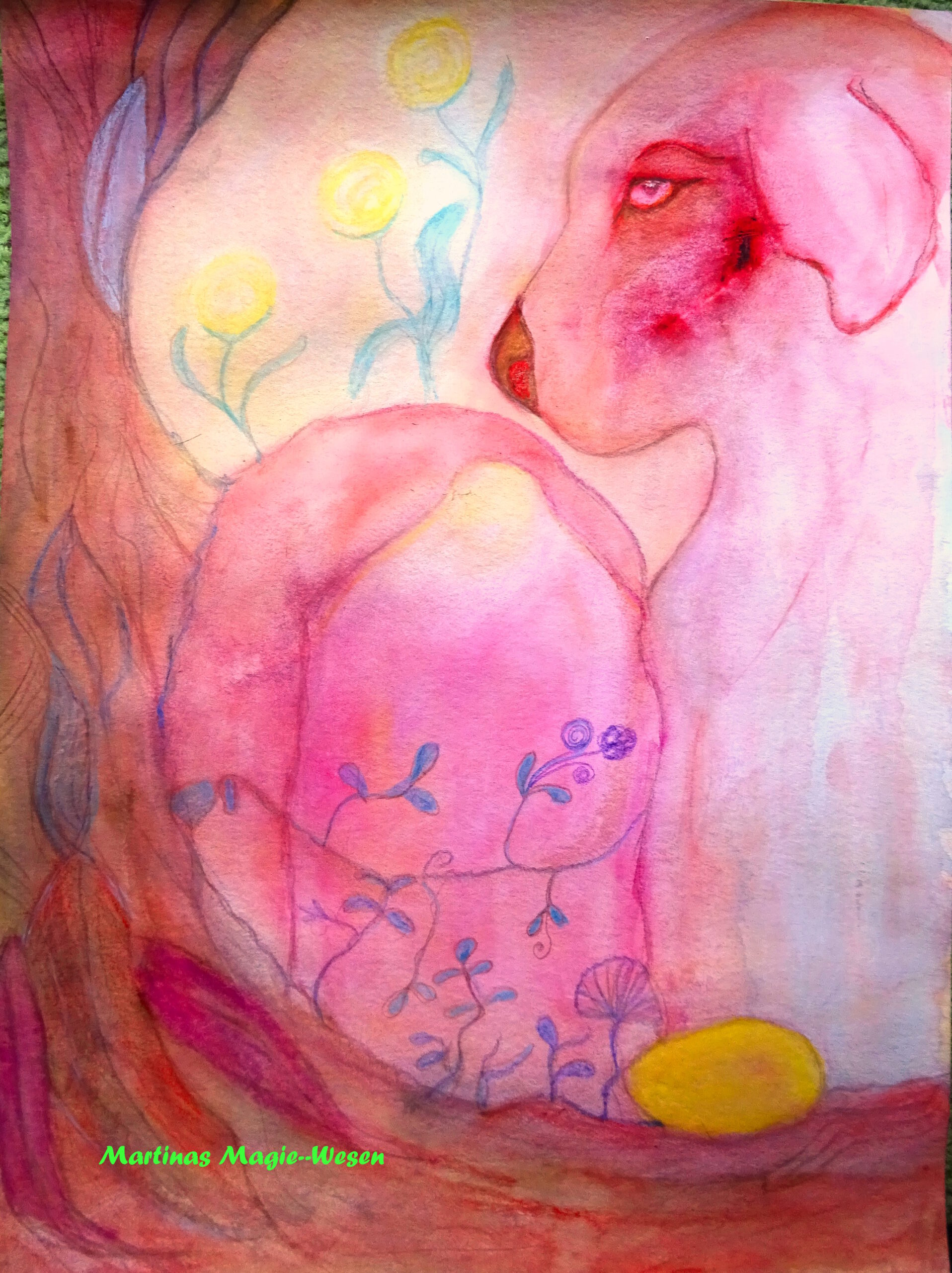 Meine inneren Anteile, Gefühle, Geschichten, Räume, Landschaften verkörpern sich zu Magie-Wesen. Dann können Worte kullern - Seelenpoesie in seiner individuellen Weise. Erkenntnisse sickern in mein Bewusstsein.